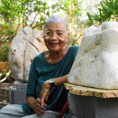The opening of the first exhibition by Gwen Garcia (Curaçao, 1964) takes place on Saturday morning, November 7th, 2020, at Landhuis Bloemhof. Gwen makes wooden sculptures. His works come in different sizes and are all exhibited on pedestals. Gwen’s father, Wilson Garcia, is also present, and in the exhibition, there are 5 paintings by Wilson on the wall. The remaining walls are bare, in order to not distract the attention from his son’s work.