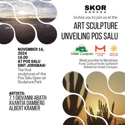 Because of the two eye-catching murals he’s created, he is one of the five well-known “street artists” who are currently being honored at Landhuis Bloemhof’s art gallery with a group exhibition about their outdoor artwork, entitled “Di Muraya pa Muraya”. Francis has created several murals, but he’s best known for his “Three o’clock romance” in Scharloo and “Sunú” in Otrobanda.