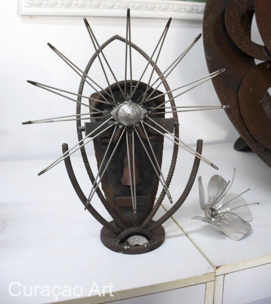 His first solo exhibition, featuring ten artworks, happened in 2015 at the refinery on the occasion of a commemorative exhibition on the oil refinery titled 100 aña refineria den nos bida (The refinery in our lives for 100 years). The series is the starting point for creating the monumental work “Man of Steel”, after artist Felix de Rooy’s advice and guidance.
