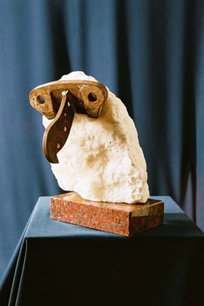 Brigitte works intuitively, and form matters to her most. In her paintings, the composition of the different forms and colors must be balanced, whether featuring animal figures or abstract elements. She allows the material to reveal its hidden form in her stone sculptures. Sometimes she can even leave the stone partly in its natural, rough shape or create a figure by adding iron parts. An example of this approach is the small statue of ‘The Pelican’. The stone is used for the body, while the iron additions form the head, and complete the bird.