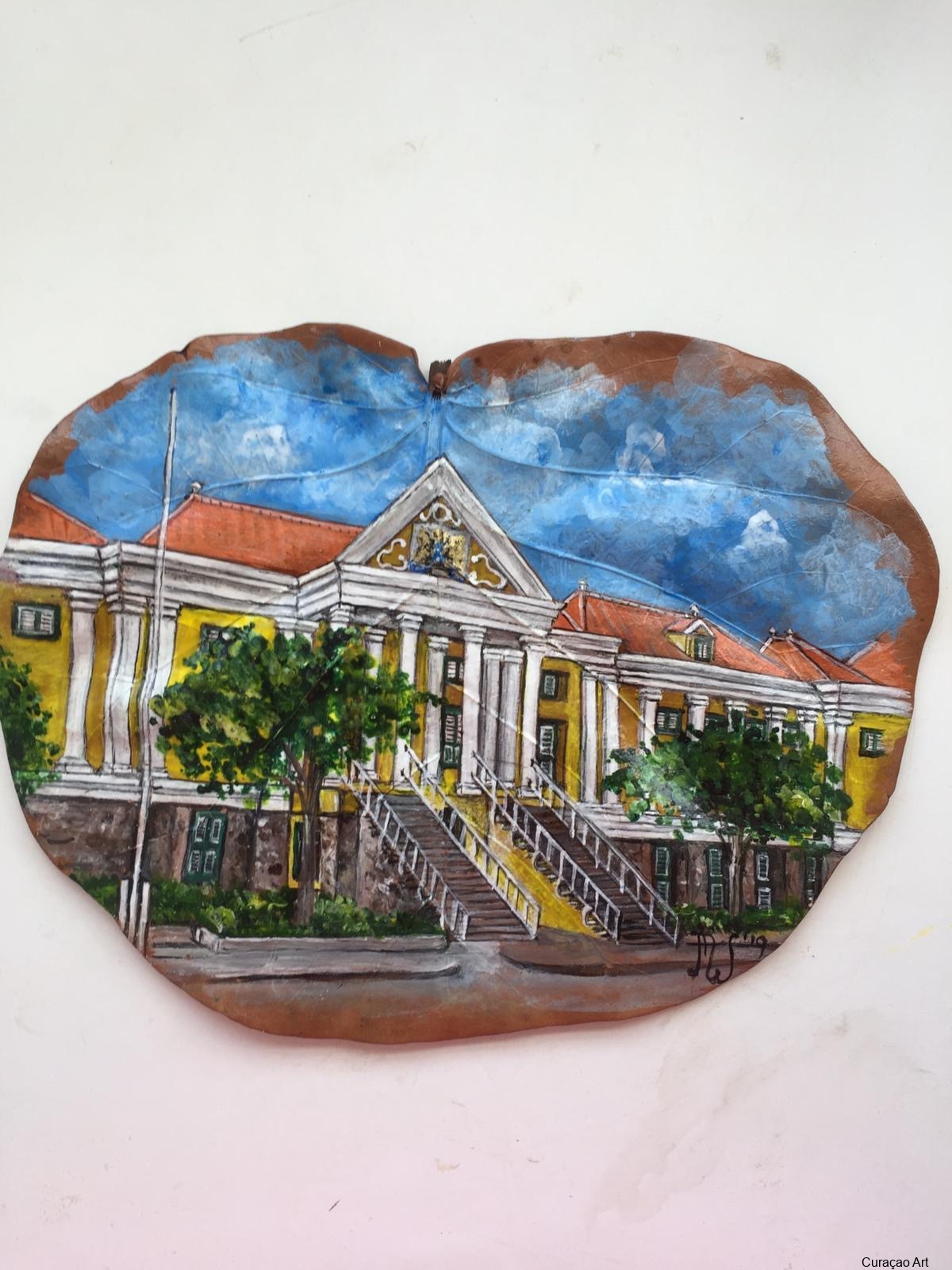 In October 2002 Marjon moves to Curaçao together with her new husband, Rien te Hennepe. Promptly after her arrival she has her first exhibition on the island at Gallery Alma Blou, alongside Richard Doest and Rita Cijntje. Her small paintings on Sea grape leaves prove to be very popular. She still does these exclusive, miniature paintings, but only on request.