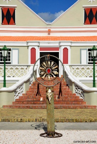 On February 24, 2014, Philippe Zanolino together with Rene Guillot raised a large Dream Catcher on top of the highest point of Curaçao, the Christoffel-mountain or Seru Kristòf. Their artwork was dedicated to freedom fighters in general and the dream of Martin Luther King in particular. They had deliberately chosen the spot on top of the Christoffel, to create public awareness for their mission. However, the Christoffel mountain is located in a national park and as the management did not approve the idealistic artistic statement, the Dream Catcher was swiftly removed by park rangers and returned to its creators. Although somewhat disappointed, both artists decided that if there was no place in the park for the dreamcatcher, certainly that could not stop their mission. First, they took it to the foot of the Ser’i Indjan, a symbolic spot in the middle of nature. Although everyone thought the Dream Cather had reached its final destination, that was not the intention of its makers. In the following weeks, it was taken to the Curaçao Museum, the St. Anna Bay, and to the Governor’s Palace.